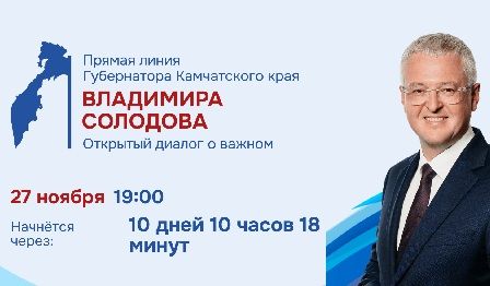 Прямая линия губернатора Камчатки Владимира Солодова пройдет 27 ноября в 19:00. Владимир Солодов ответит на волнующие граждан вопросы в прямом эфире.