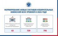 Кроме того, в 2026 году будут формироваться 729 территориальных комиссий и 795 УИК. Стоит отметить, что срок полномочий части комиссий этих уровней (1845 ТИК и 937 УИК) истек в 2025 году, они уже сформированы или же члены комиссий будут назначены в ближайшее время.