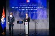 «На предыдущем посту вы были примером для многих муниципальных образований – внедряли лучшие практики по созданию муниципальных предприятий, достойно справились с наводнением, своевременно оказали необходимую помощь. Программы по созданию опорных населённых пунктов с комплексным развитием села, объектами культуры, спорта позволяют жителям видеть большой потенциал в объединённом округе. Здесь ремонтируются школы, строятся социальные объекты, решаются вопросы с водоснабжением, в жилищно-коммунальном хозяйстве. В Спасске есть большой потенциал по землям сельхозназначения, промышленным предприятиям, обеспечению газом», – подчеркнул Губернатор и вручил Олегу Митрофанову удостоверение главы.