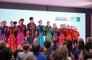 Торжественное мероприятие продолжила концертная программа, где выступили творческие коллективы и ансамбли Приморского края. Для гостей в этот день развернулась выставка «Символы народов России – живая связь поколений». В экспозиции – традиционные головные уборы, музыкальные инструменты и обрядовые атрибуты народов, проживающих в Приморском крае. Особое место занимает коллекция головных уборов мастерской золотного шитья «Золотая нить», которая победила в общероссийском конкурсе кокошников «Коруна» в 2026 году на выставке-форуме «Уникальная Россия».