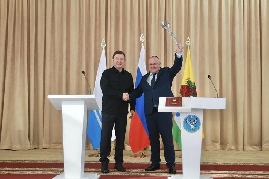 Глава Республики Алтай Андрей Турчак поздравил Игоря Русских со вступлением в должность главы муниципального округа «Чойский район».