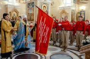 Священнодействие прошло в Спасо-Преображенском кафедральном соборе. Митрополит Владивостокский и Приморский Павел лично освятил именное юнармейское знамя, а также подчеркнул, что присвоение приморскому региональному отделению «Юнармии» имени Святого праведного воина Федора Ушакова – это одновременно большая честь и большая ответственность.