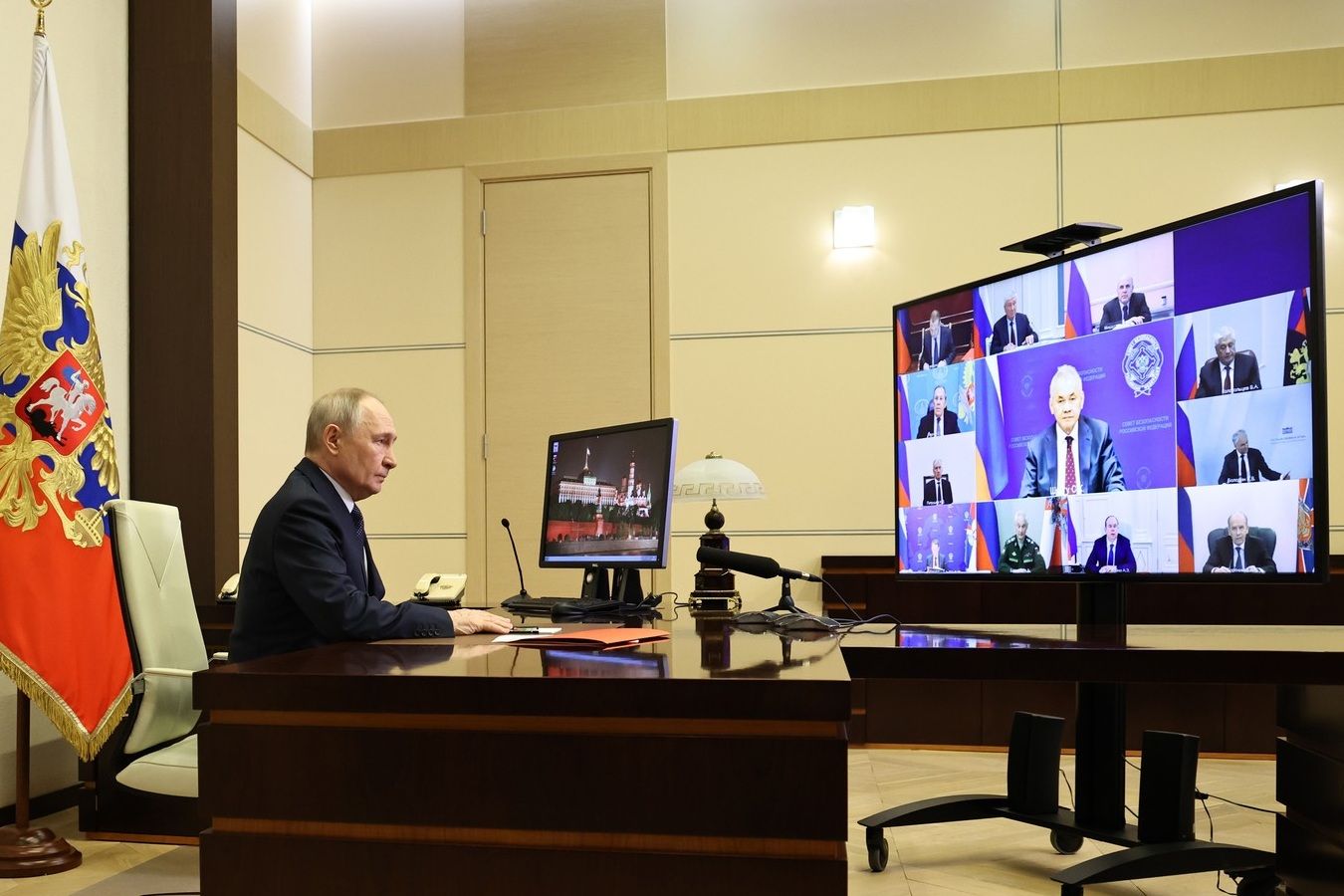 Президент Владимир Путин по видеосвязи провёл оперативное совещание с постоянными членами Совета Безопасности.