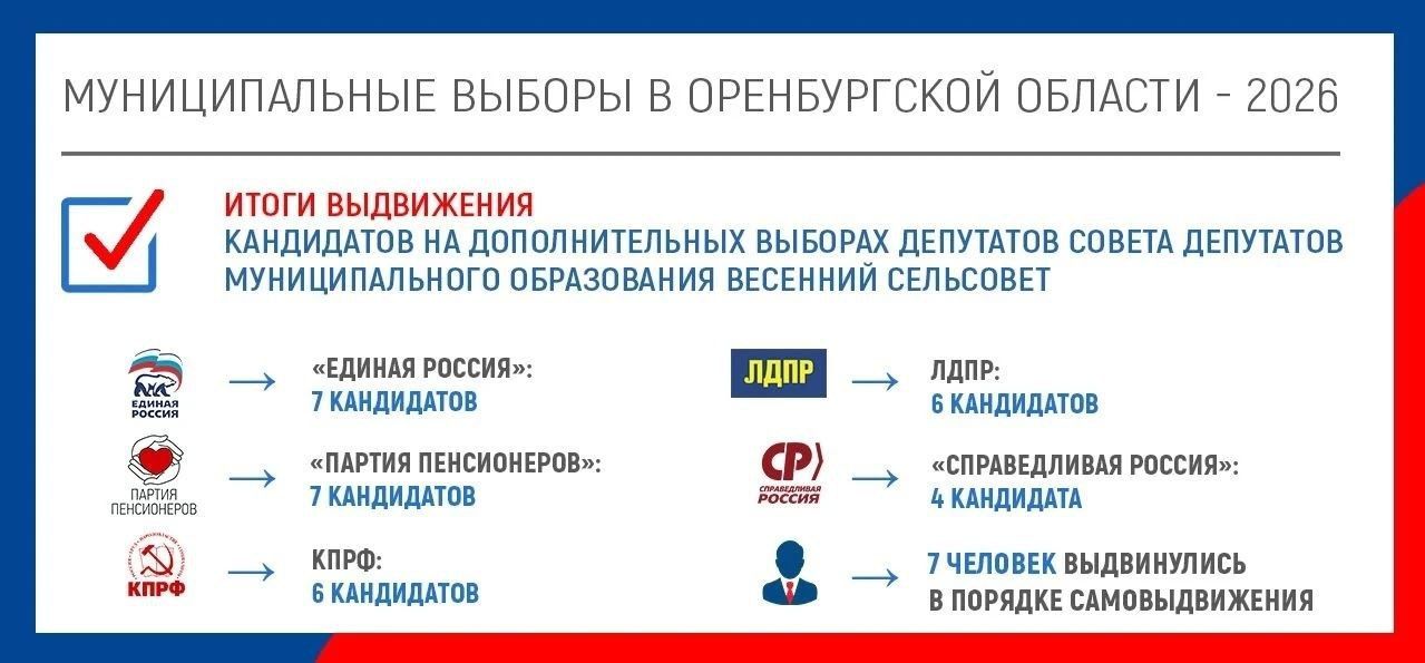 В Оренбургском районе завершилось выдвижение кандидатов на дополнительных выборах депутатов Совета депутатов муниципального образования Весенний сельсовет.