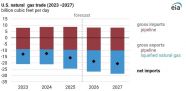 На графике — прогноз Минэнерго США по нетто-экспорту природного газа из Штатов. Экспорт СПГ будет расти и уже в 2027 году достигнет 200 млрд кубометров против 156 млрд кубометров в 2025 году.